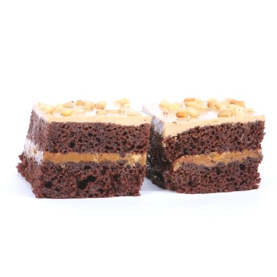 Состав: Тесто шоколадное: мука пшеничная в/с, какао, шоколад, яйцо куриное, сахарный песок, молоко коровье, масло растительное, сода пищевая, уксус. Крем: сгущеное молоко вареное, молоко коровье, орехи, желатин, ванилин.